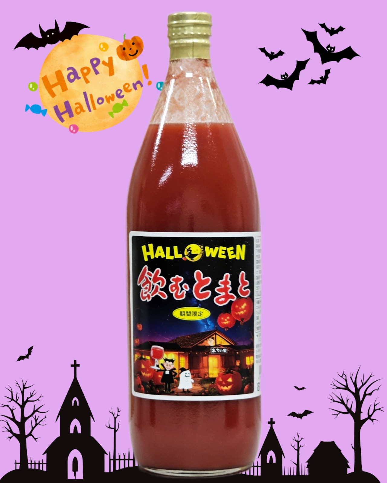 あちの里人気商品『飲むとまと』のハロウィンラベル登場!