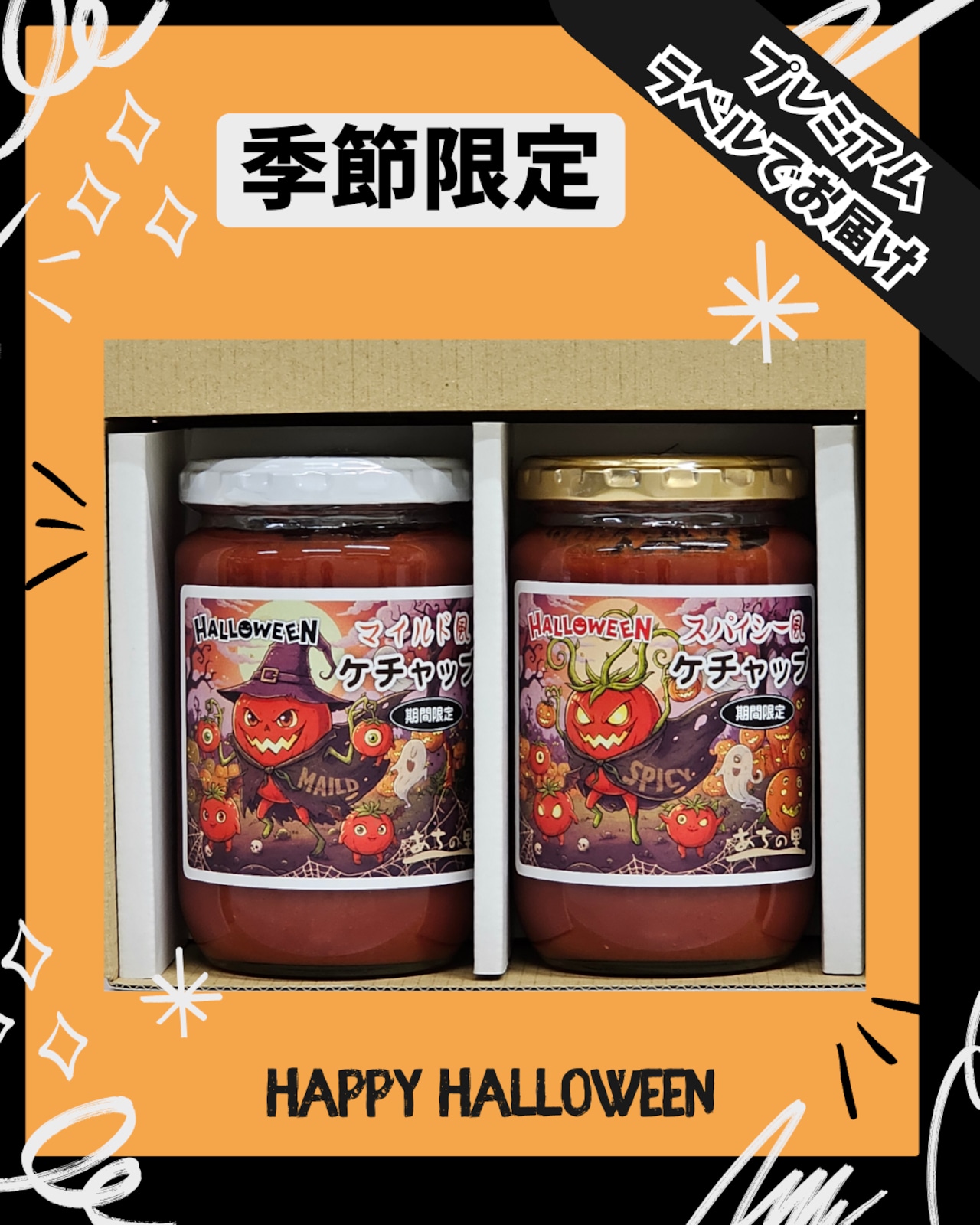 ケチャップ『マイルド風』と『スパイシー風』のハロウィンラベル登場!